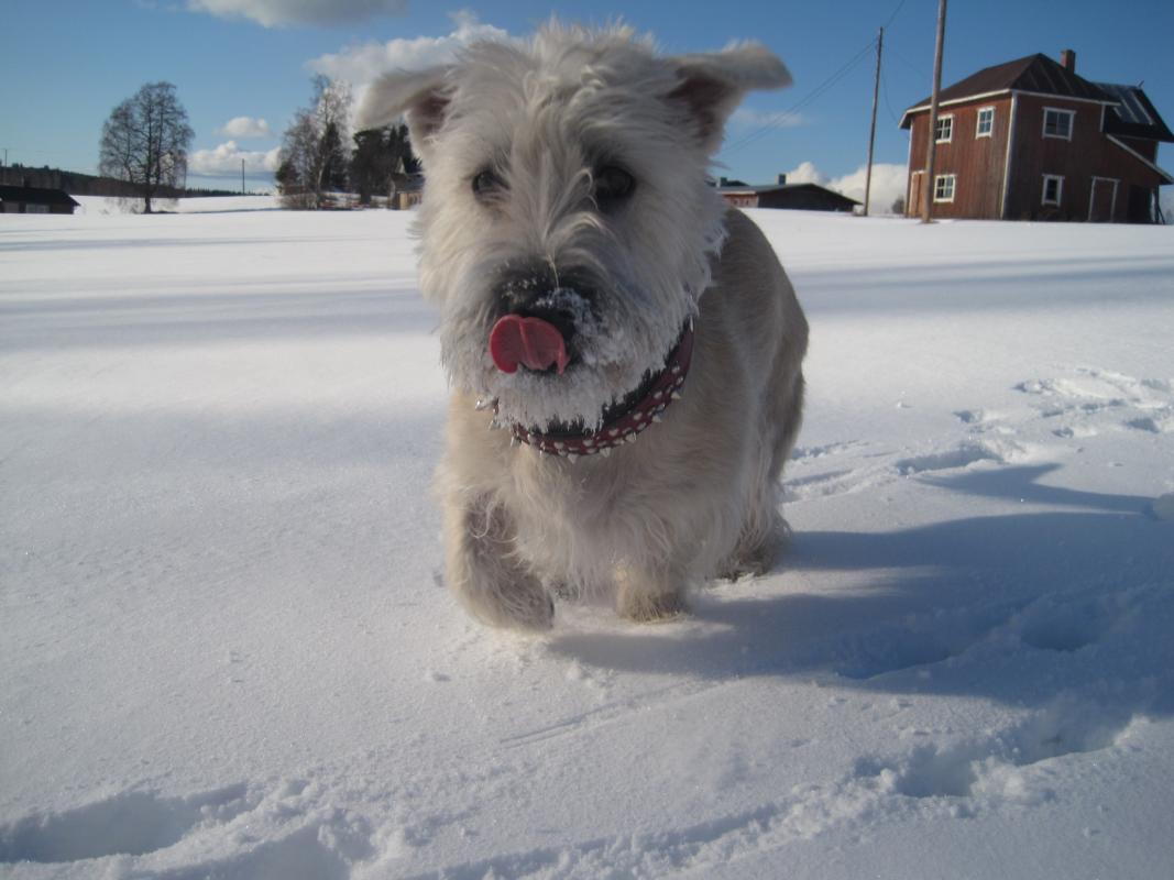 …teillä pitää olla supersiistiä! Vaikka glennillä ei ole karvanlähtöä, se tuo sisään paljon hiekkaa ja pieniä metsiä. Sillä on parta, jonka se pyyhkii mielellään mattoon ruokailun päätteeksi.